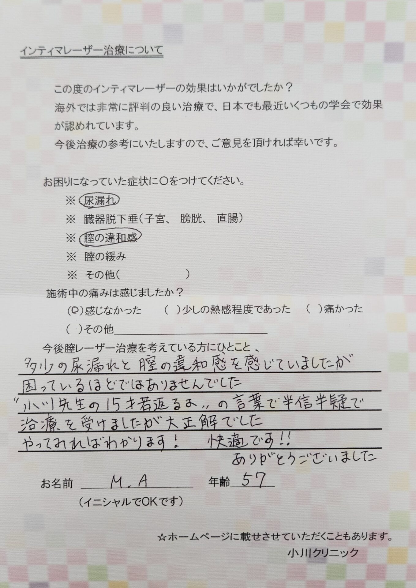 【今後膣レーザー治療を考えている方にひとこと】