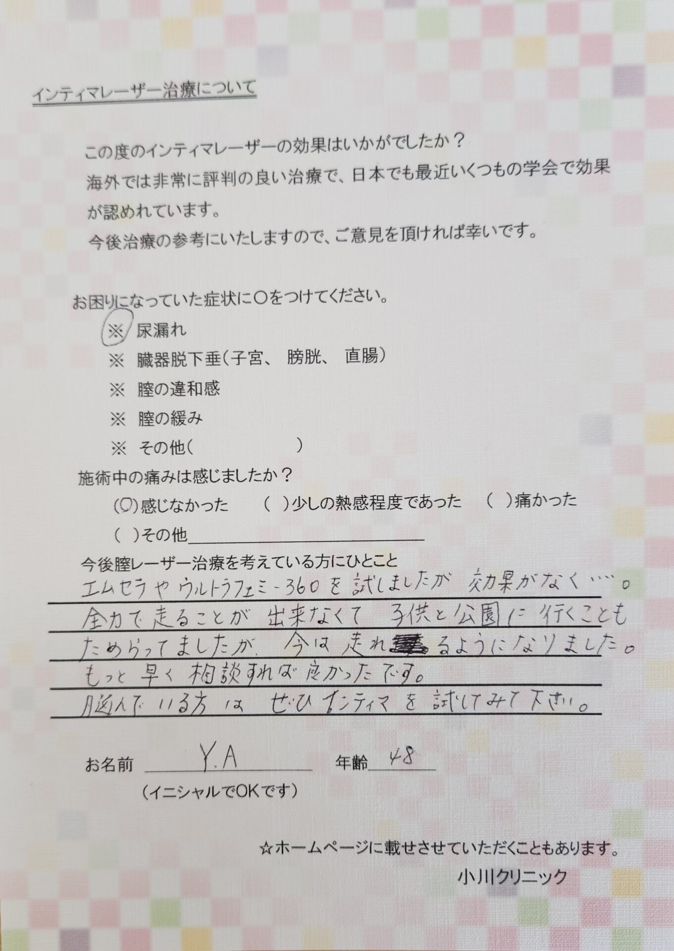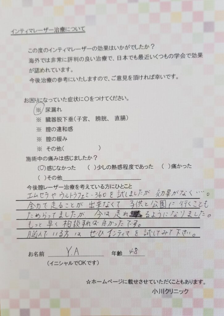 【今後膣レーザー治療を考えている方にひとこと】